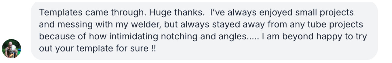 There’s no complex math. No expensive tools. No software to learn.Just print the templates, wrap them on your tube, and cut. You’ll be building clean, professional‑looking joints in minutes instead of grinding you life way hoping for the best.If you’ve been staring at projects and telling yourself you’ll “start when you have the right tools,” this Starter Kit is how you start now.Drop your email below and I’ll send you the free Starter Kit so your next project is a lot easier.(Fair warning: once you see how simple this is, you might not want to use other notching tools…)