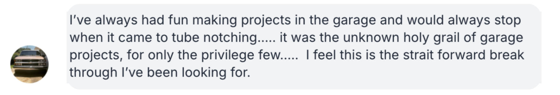 This Starter Kit gives you everything you need to start building with tube from a garage – no shop, no engineering degree.Drop your email and I’ll send you the free Starter Kit so you can see how simple this actually is.Now you can notch perfect joints in minutes. (That look a high end fab shop did them